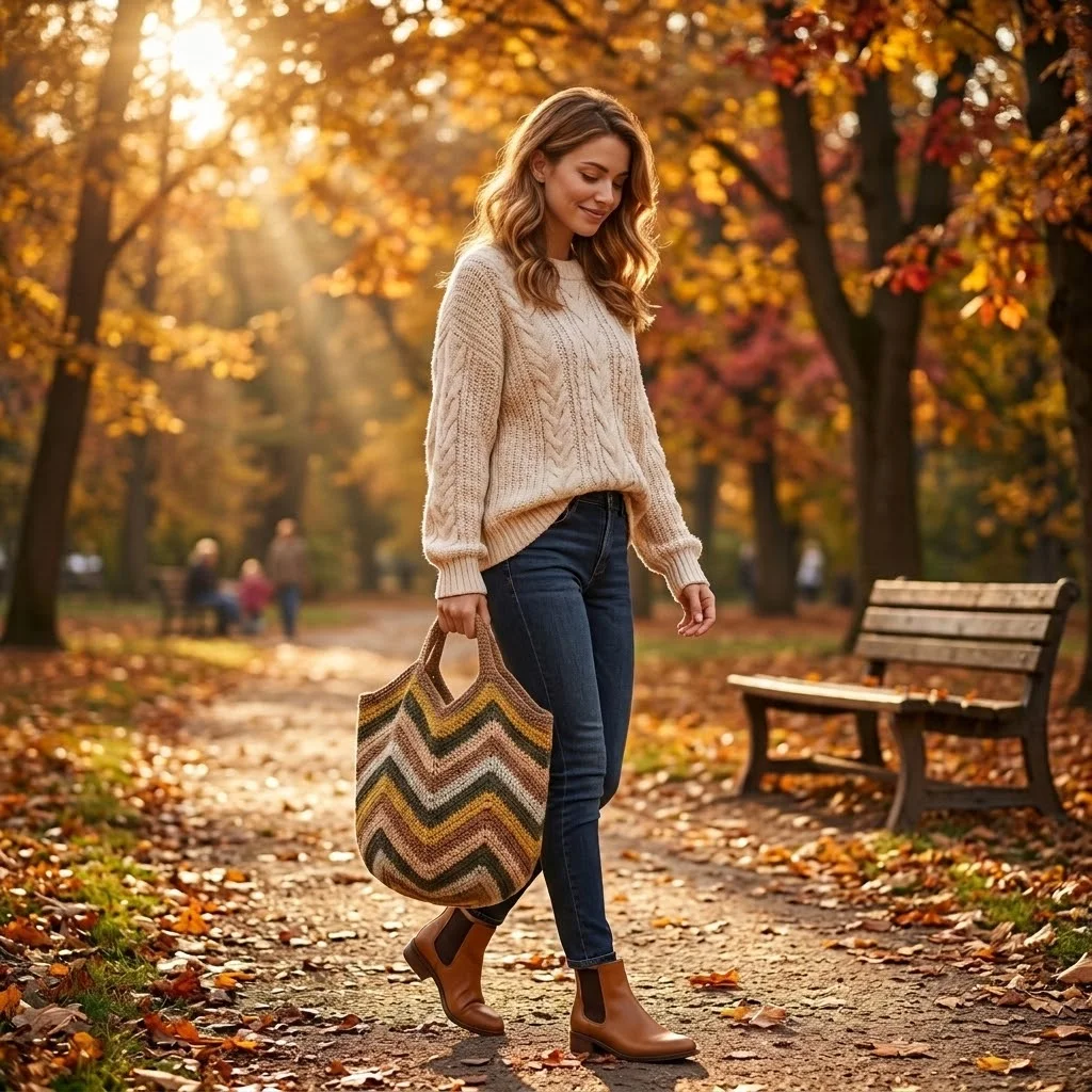 ნაქსოვი ჩანთა შემოდგომის ფერებში