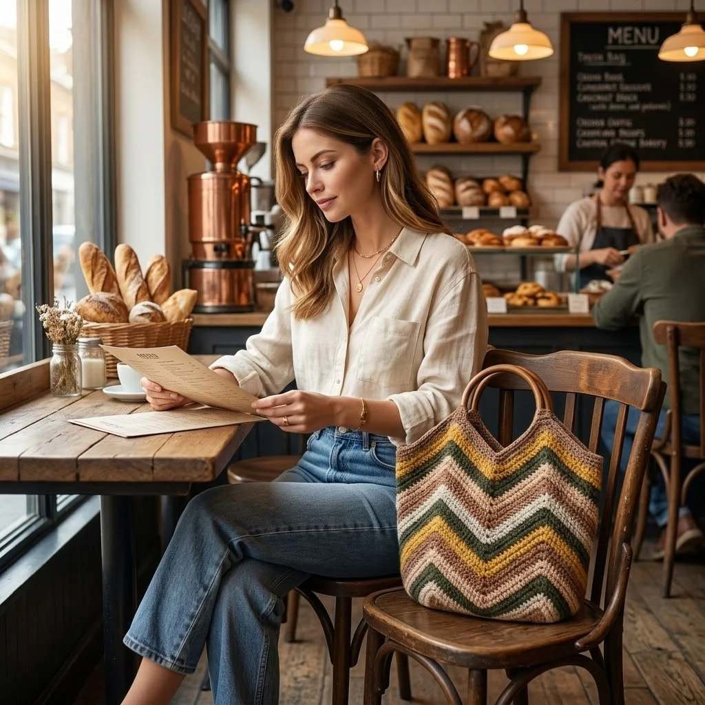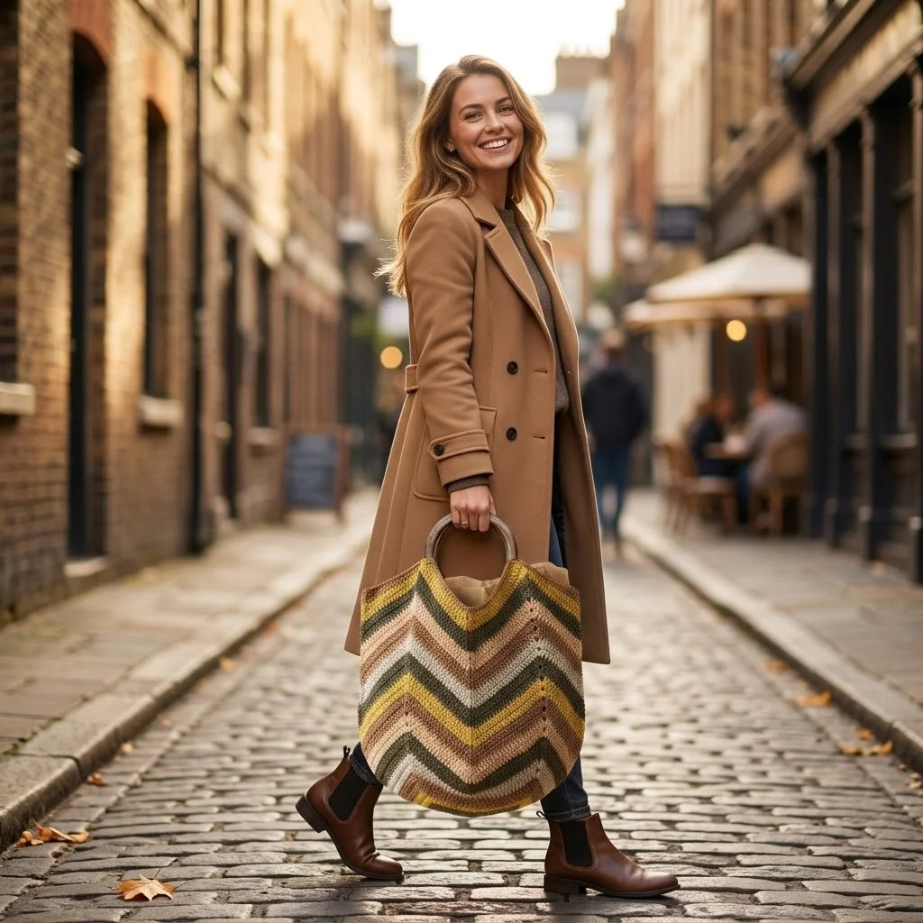 ფერების ჰარმონია: ჩანთაში ოსტატურადაა შეხამებული ზეთისხილისფერი (Olive), მდოგვისფერი (Mustard), კაპუჩინოსფერი და ნაზი კრემისფერი ტონები. ეს პალიტრა ბუნებასთან სიახლოვის შეგრძნებას ქმნის და ძალიან პრაქტიკულია სხვადასხვა ფერის სამოსთან შესახამებლად.
