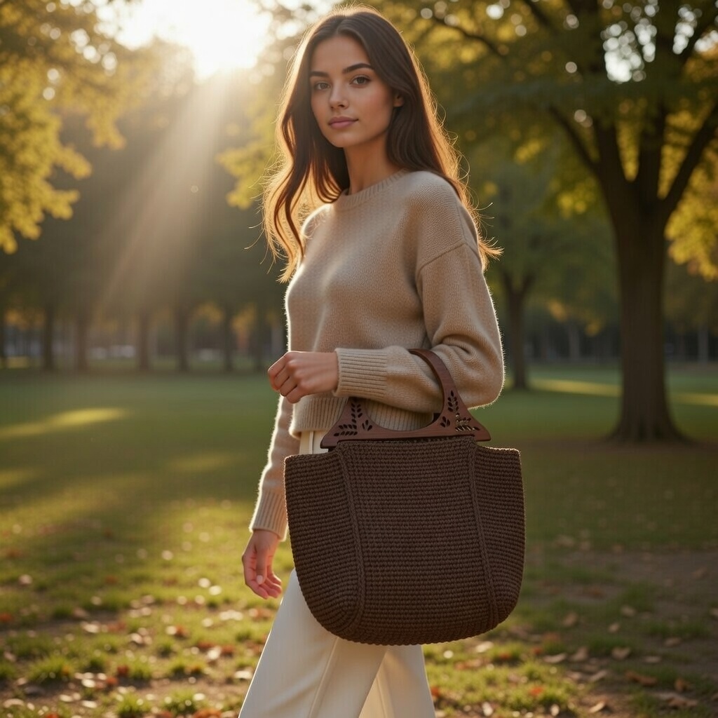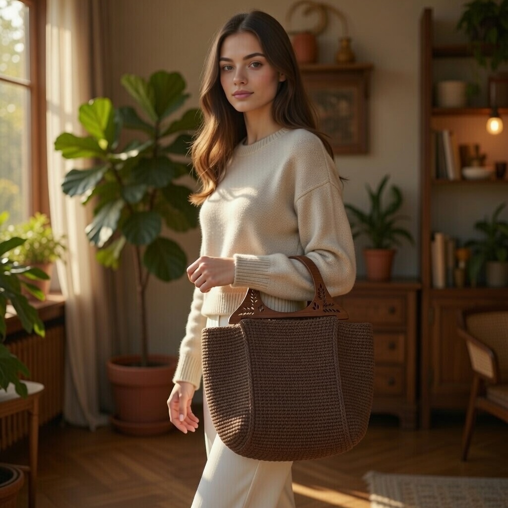 შოკოლადის ხის სახელურიანი ჩანთა