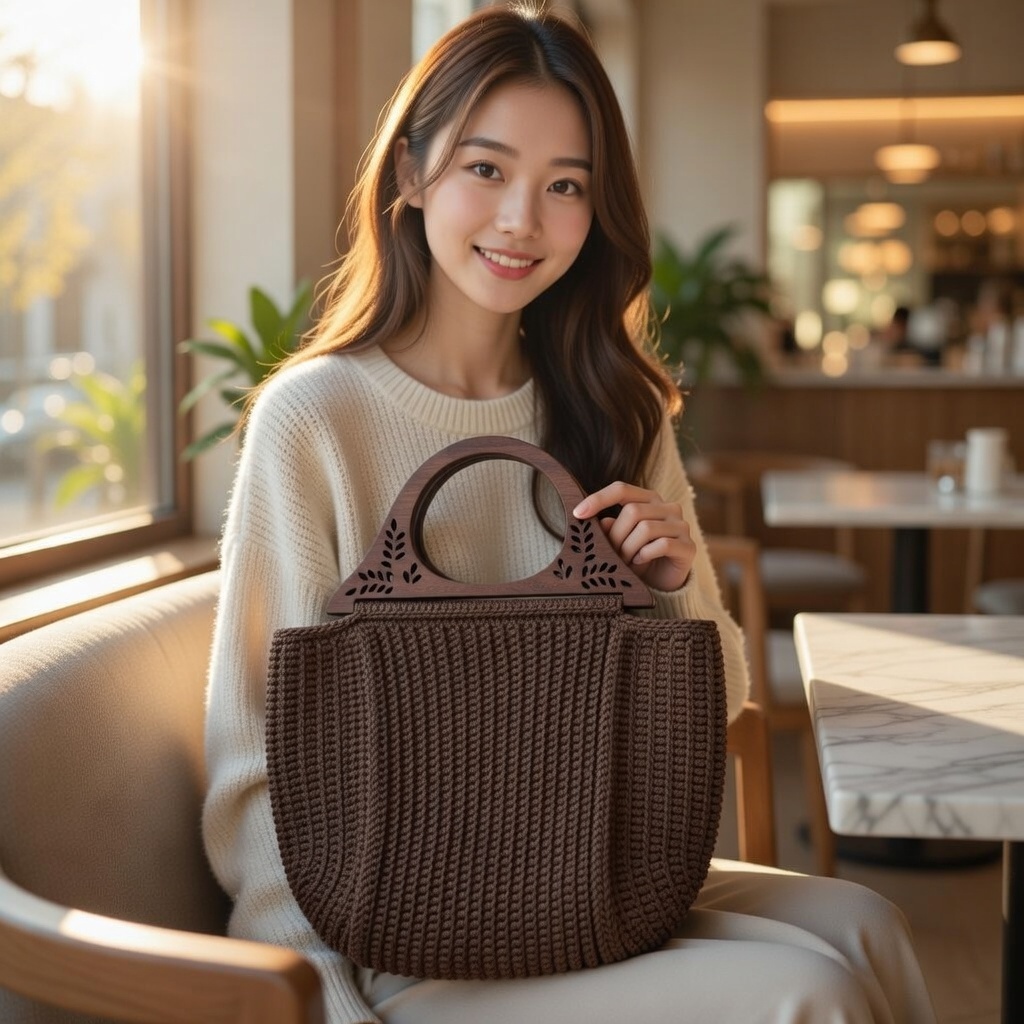 შოკოლადის ხის სახელურიანი ჩანთა
